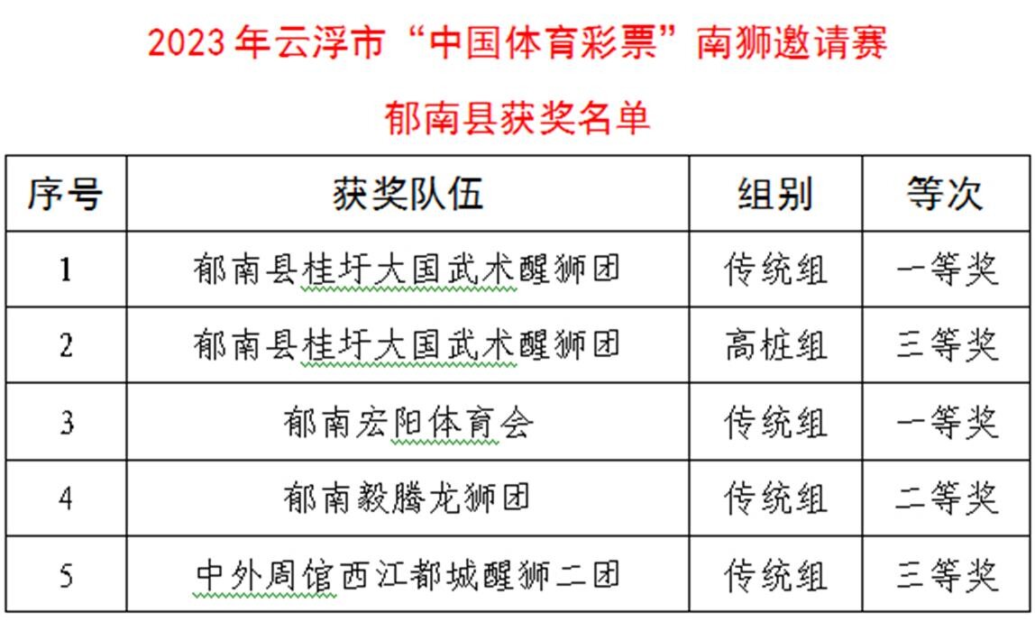 近日,由云浮市文化廣電旅游體育局主辦、云浮市龍獅運(yùn)動協(xié)會承辦的2023年云浮市“中國體育彩票”南獅邀請賽在云浮市體育公園成功舉辦,郁南縣龍獅運(yùn)動協(xié)會組織郁南縣桂圩大國武術(shù)醒獅團(tuán)、郁南宏陽體育會、郁南毅騰龍獅團(tuán)、中外周館西江都城醒獅二團(tuán)4支隊(duì)伍參賽,載譽(yù)歸來。