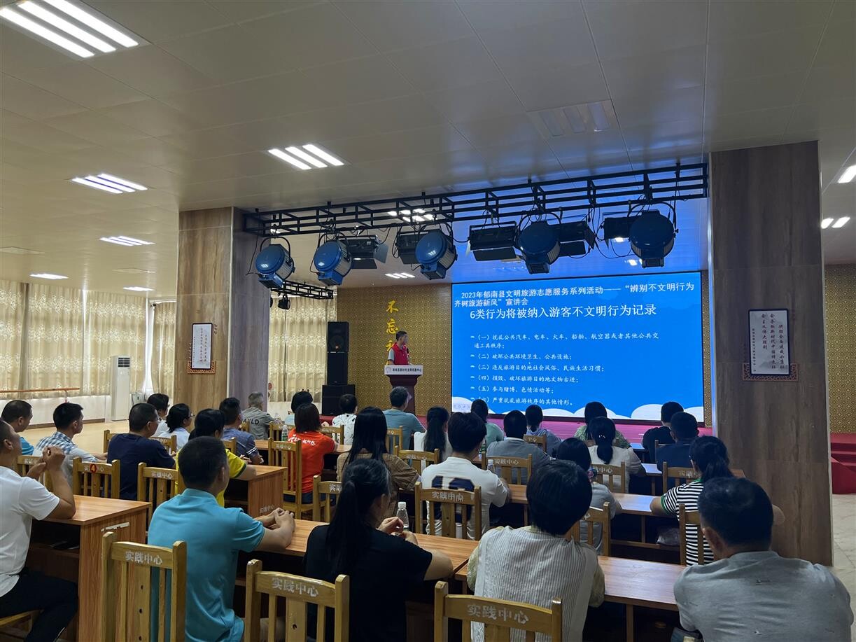 端午假期、暑假將至,為深化文明城市創(chuàng)建工作,傳遞文明旅游觀念,進(jìn)一步提升郁南人民的文明旅游素養(yǎng),6月5日,郁南縣旅游志愿服務(wù)隊(duì)在縣新時(shí)代文明實(shí)踐中心成功舉辦2023年郁南縣文明旅游志愿服務(wù)系列活動(dòng)——“辨別不文明行為齊樹(shù)旅游新風(fēng)”宣講會(huì),參與人數(shù)近百人。